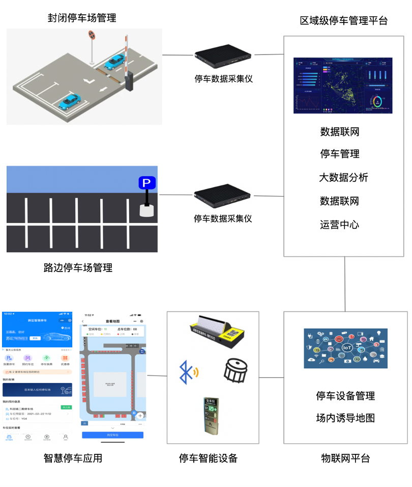停车数据联网系统是实现区域内停车数据汇聚及共享而研发的,系统采用自有专利技术实现对90多个停车系统品牌的数据采集。